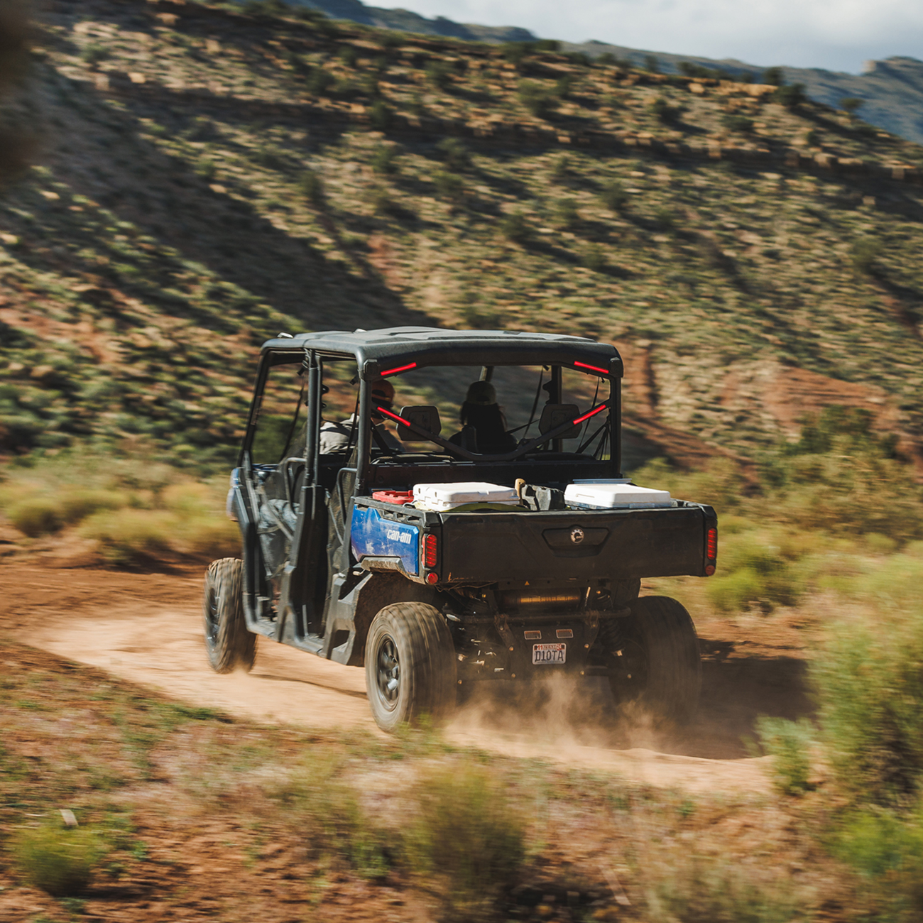Customized with next-generation diffused LEDs, Pulsates four times when braking, delivering 300% brighter light than OEM brake lights, Runs 5x brighter than stock taillights, Can add up to four sets (eight lights total), IP67-rated with heavy-duty polycarbonate lenses, aluminum heat-sink frames, and waterproof wiring, Includes roll cage mounting adapter plate, brake light flash modulator and Plug-and-Play harness, Fully Plug-and-Play installation in under 30 minutes, Mounts to any flat surface or 1-1/4” - 2-1/2” roll bar, including OEM and aftermarket bumpers.