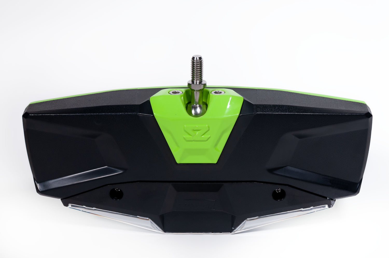 Featuring a low profile hinged clamp, this bezel provides maximum clamping force while minimizing interference with other accessories, ensuring easy installation. The stainless steel ball stud lock bolts allow for secure locking of the mirror into the plate, with the flexibility for micro adjustments to achieve perfect positioning. The aluminum billet locking block and bolts lock the ball stud firmly in place, preventing unwanted movement even under rough road conditions. Laser-etched graphics on the hard anodized aluminum surface ensure the design remains sharp and resistant to wear over time.