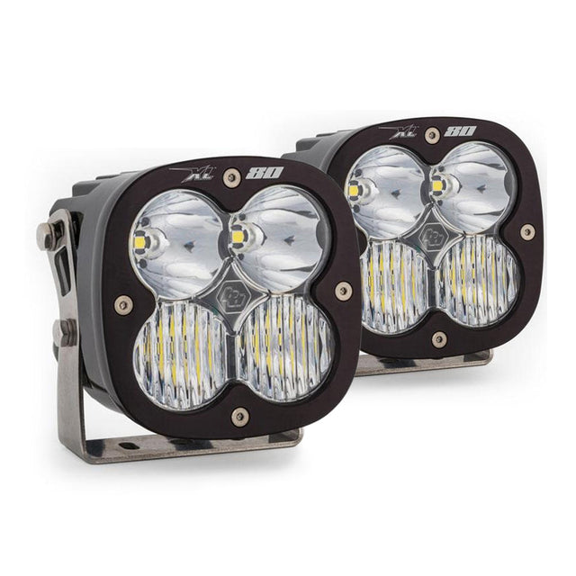 The Baja Designs XL80 auxiliary LED light pair elevates your off-road lighting with superior visibility and brightness. Equipped with our trademarked high-speed spot reflectors, the XL80 delivers a longer and wider beam pattern. Utilizing next-generation LED technology, it offers 18% greater distance and increased intensity compared to our previous model, pushing an impressive 9,022 raw lumens per light. This makes it perfect for any off-road vehicle, including trucks, vans, UTVs, and motorcycles.